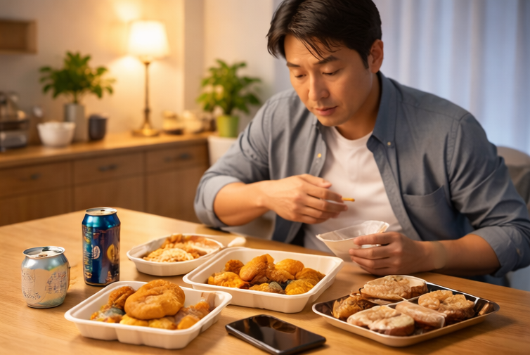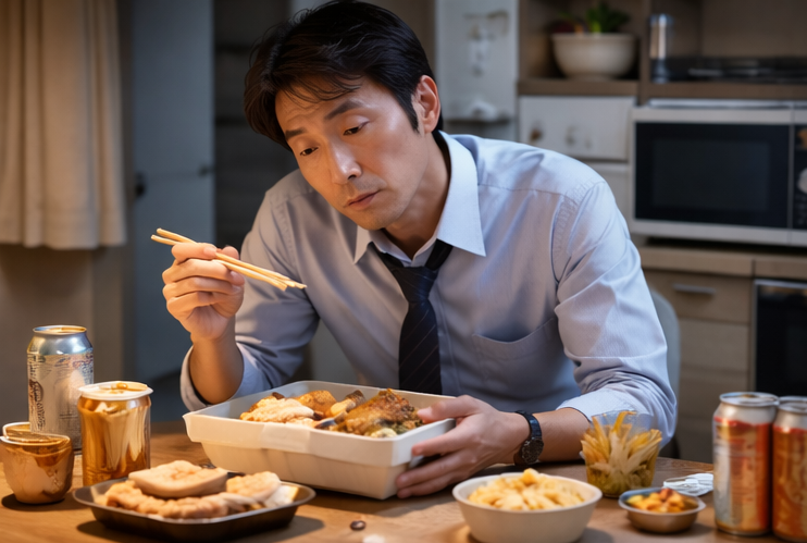 単身赴任生活が落ち着いてくると、食事は次第に「効率」で選ぶものになりがちです。仕事終わりに立ち寄れる店、待たずに買える弁当、片付けの手間がかからないメニュー。どれも忙しい日常を支えてくれる心強い存在ですが、同じ選択が続くと、ふとした瞬間に違和感が生まれます。